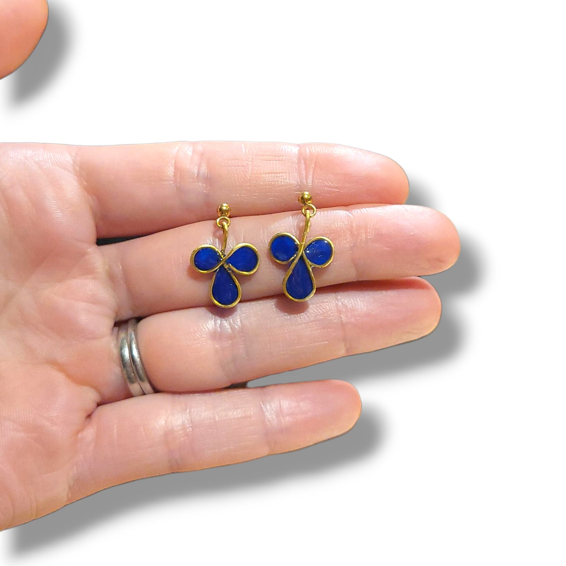 Celebrate Ireland’s heritage with these Emerald Blue Shamrock Drop Earrings, beautifully handcrafted with a vibrant sheen that captures the magic of the Emerald Isle. Each earring features a gold-tone shamrock design, made from wire and filled with cobalt blue resin, creating a striking symbol of luck, Irish culture, and Celtic tradition.