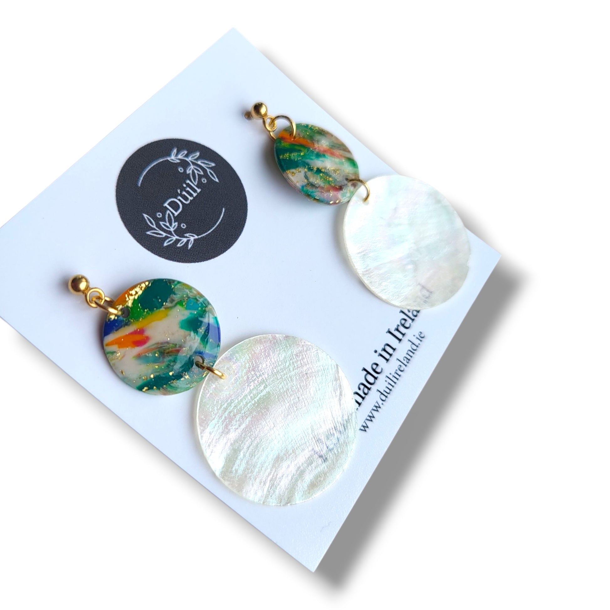 Elevate your style with these stunning, one-of-a-kind handmade Irish jewellery earrings. Meticulously crafted in Clondrohid, County Cork, Ireland, these earrings are a unique blend of vibrant artistry.