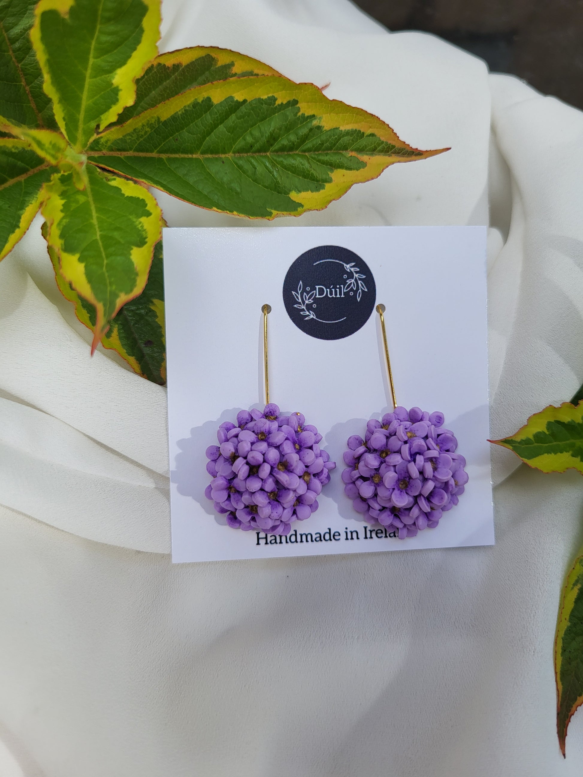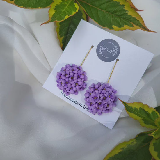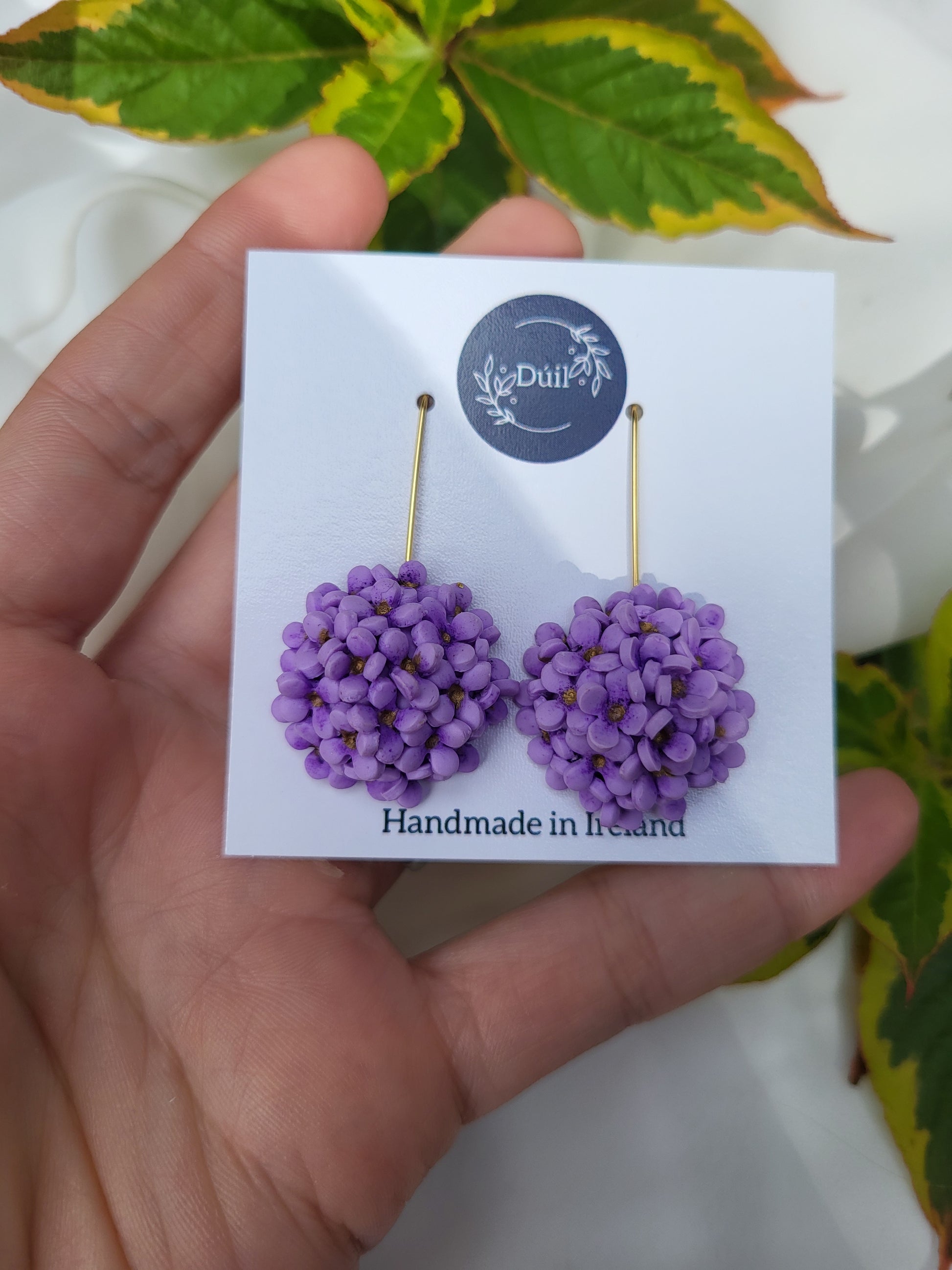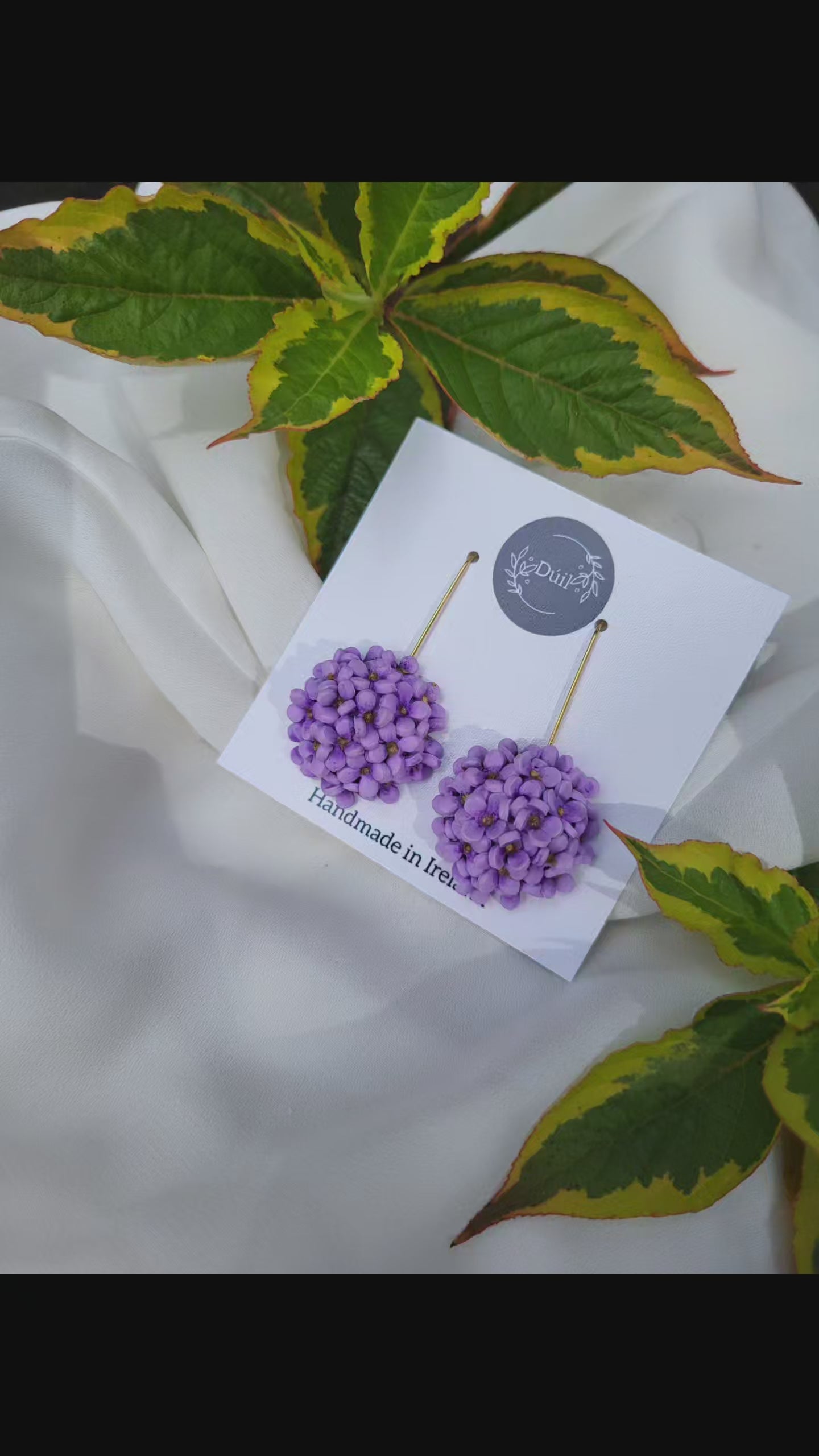 Capture the essence of spring with these delightful Lilac Floral Dangle Earrings all year round. Meticulously handmade, these earrings feature a charming, ball-shaped cluster of tiny lilac-coloured handmade polymer beads that resemble a budding flower. The delicate floral design is suspended from a sleek, gold-tone stainless steel French wire hook, ensuring a comfortable and secure fit.
