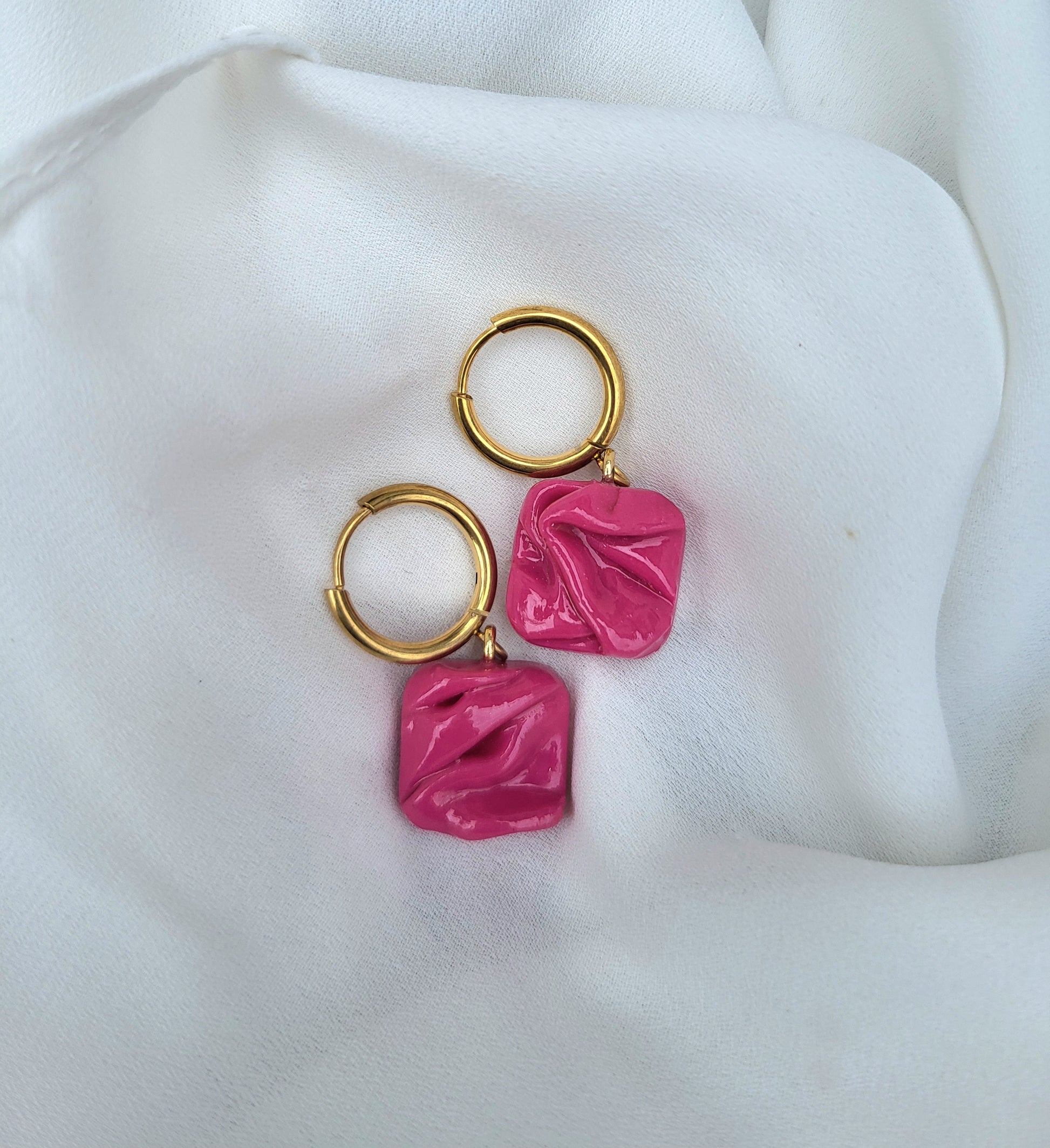 These earrings where made from handmade polymer clay beads, with stainless steel hugging hoops.